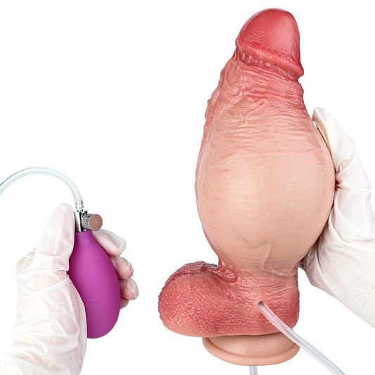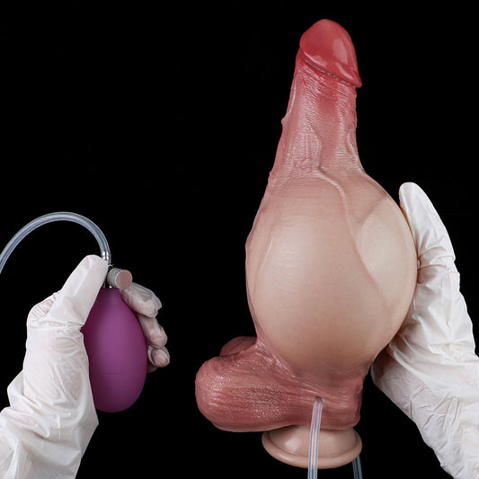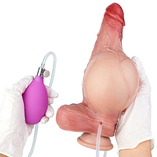 CQ508 Luxe Inflatable Ejaculating Dildo 8 Inch with Realistic Silicone Feel and Expanding Girth up to 11 Inches