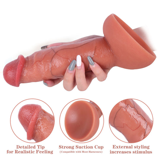 MD77 Real Feel Dual-Layer Silicone Dildo 8.5 Inch with Natural Foreskin Movement and Silken Surface Touch