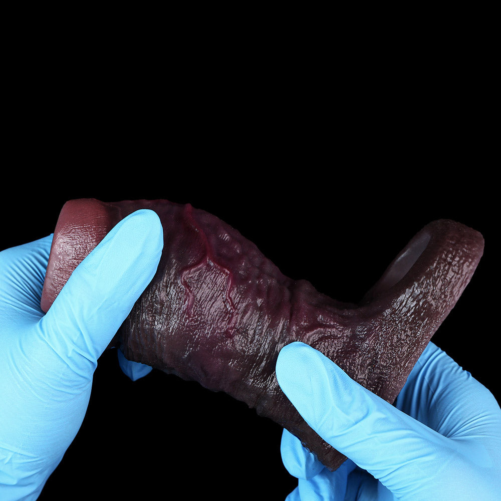Bold, rugged, and built to be felt — this deep coffee–colored girth penis sleeve is designed for anyone who craves a thicker, fuller, more dramatic presence in the bedroom. Unlike smooth, minimal designs, this model showcases heavy texture, deep wrinkles, and aggressive detailing, creating a powerful visual statement the moment it appears.
